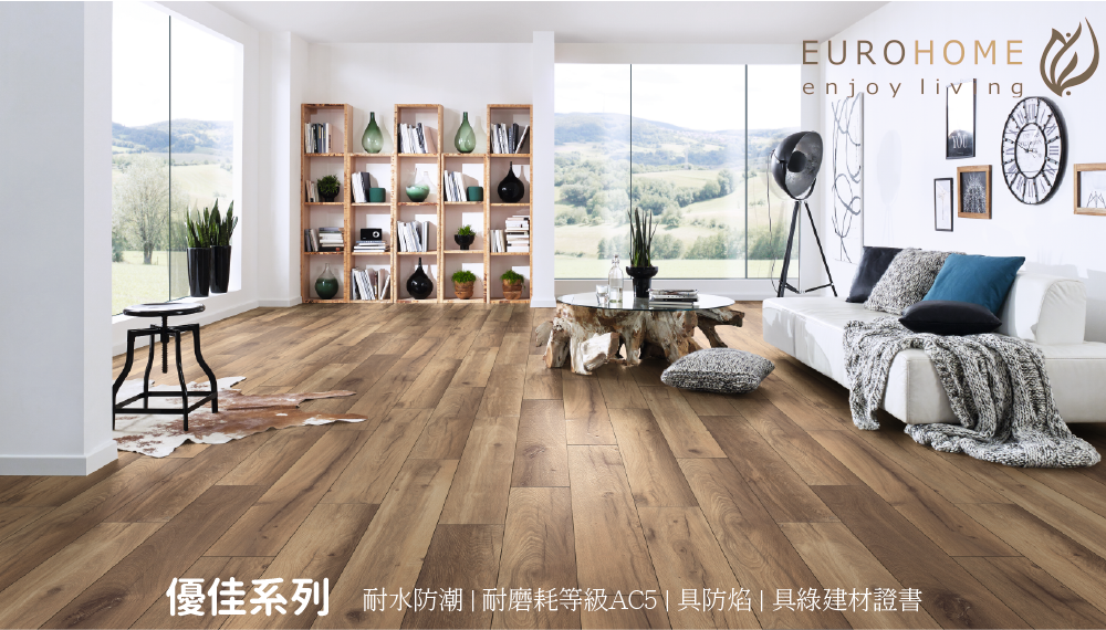 經營理念 EUROHOME品牌價值 產品型錄 優佳 / Binyl PRO 優悅 Plus / Ariosa Plus Parquet 系列 優雅 / Art 優晏 / Nature Horizon 優藝 / Nature 優境 / Villa SPC 巨石卡扣地板   地板配色系統